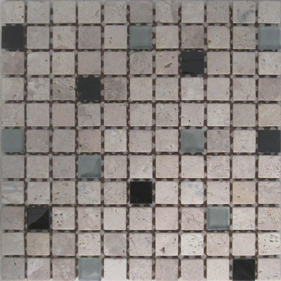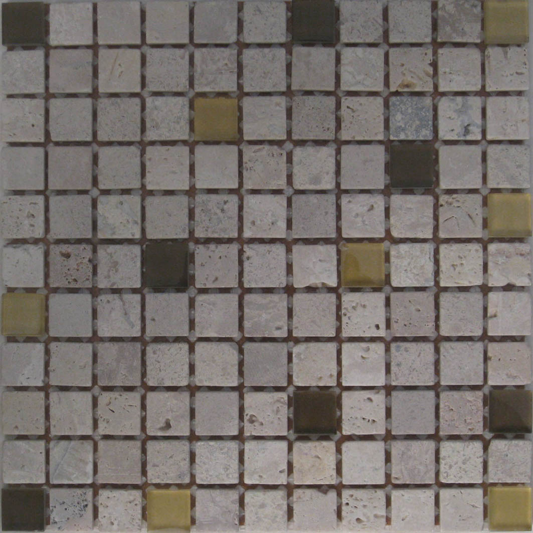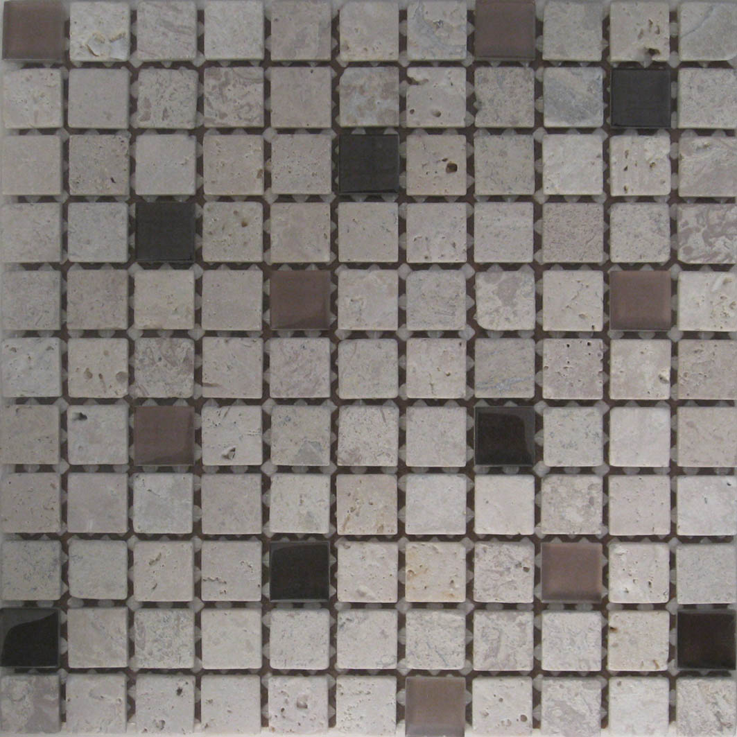 | 1"x 1" Coffee Travertine/Glass $9.95/s.f. |