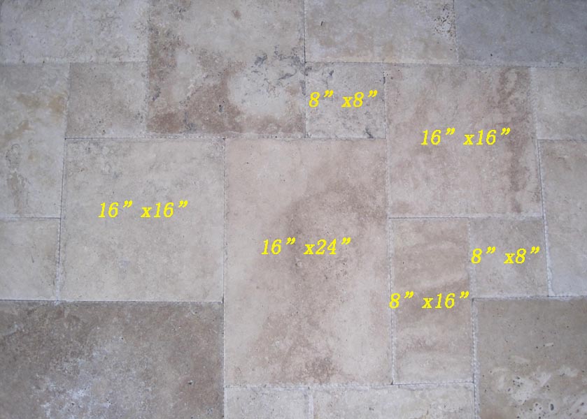 | Classic Honed Filled Versailles (8 s.f. /bundle, including: 1 pc 16"x 24", 2 pcs 16"x 16", 1 pc 8"x 16", 2 pc 8"x 8") Sale: $2.89/s.f. |